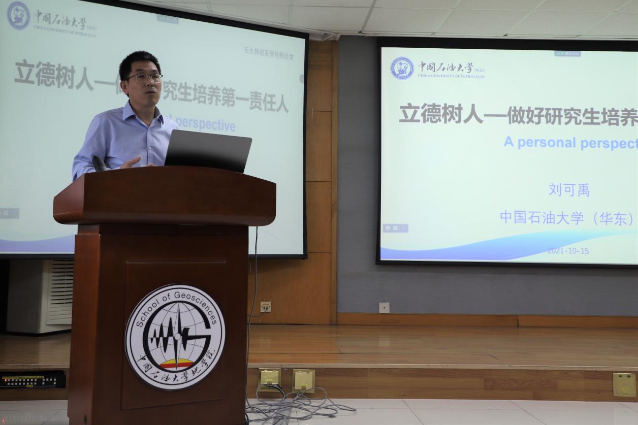 2021年10月15日,由研究生院主办、 承办的第十三期“石大师说”系列导师沙龙在工科C757成功举办。本期沙龙由学院主管研究生副院长宗兆云主持,特邀国家级高层次人才刘可禹教授为青年导师作“立德树人,做好研究生培养第一责任人”主题报告,学院党委书记赵放辉出席本次沙龙,并和与会导师进行交流。