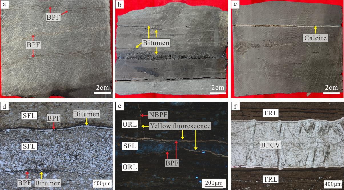 在经历强烈压实相对封闭的湖相页岩系统中,流体活动通道的形成机制长期未明。作为湖相页岩的主要裂缝类型,页理缝在流体活动过程中起着关键的控制作用。近日,中国石油大学(华东)操应长教授团队针对鄂尔多斯盆地延长组长73亚段湖相页岩中页理缝及共生的顺层方解石脉两类重要结构展开深入研究。通过两项互补性研究,系统性揭示了页理缝的成因、流体活动特征及其对页岩油成藏的控制作用,为湖相页岩油气资源勘探开发提供了重要科学依据。